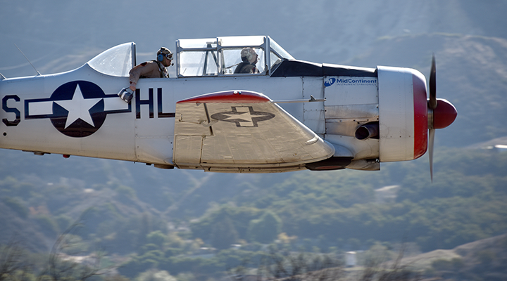 The Condor Squadron also appears in air shows and stage a brief battle with other AT-6s painted to look like fighter planes of the German Luftwaffe.